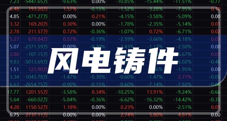 周三盘后讯息提示,12月14日风电铸件概念报跌,日月股份(19.18,-0.33,-1.69%)领跌,广大特材-1.44%、通裕重工-1.18%、山东墨龙-1.05%、豪迈科技-0.68%等跟跌。以下是部分风电铸件板块股票: