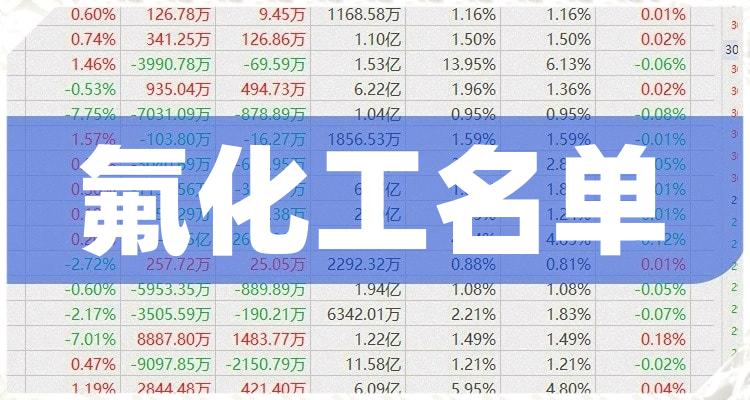 截至12月22日,A股涉及氟化工的上市公司具体分布情况为:主板的有18家、中小板的有18家、创业板的有4家、科创板的有1家。股票网趋势选股系统为您整理了归属于氟化工,并且在A股上市的公司。