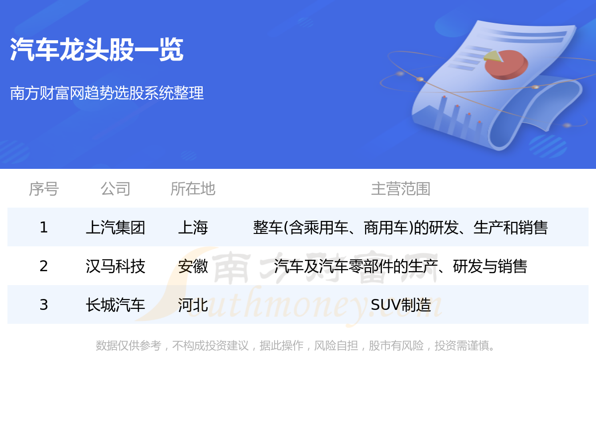 一、汽车龙头股一览