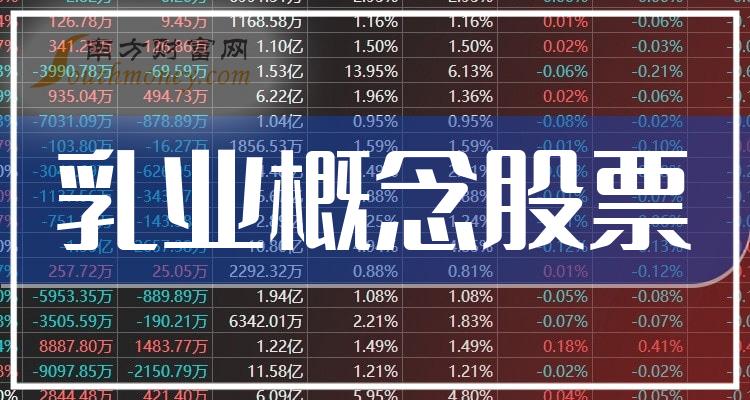 创业板乳业概念股票有品渥食品、海融科技、科拓生物、熊猫乳品、温氏股份、西部牧业等6家。根据南方财富网趋势选股系统股票工具数据整理,在市值上,截至5月31日,创业板乳业概念股票市值排名情况如下: