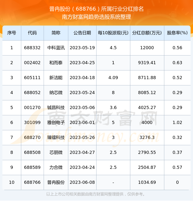 二、普冉股份688766行业分红排名