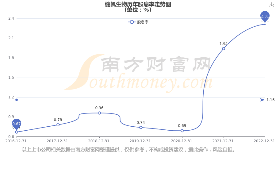 近年健帆生物年度股息率走势如下图: