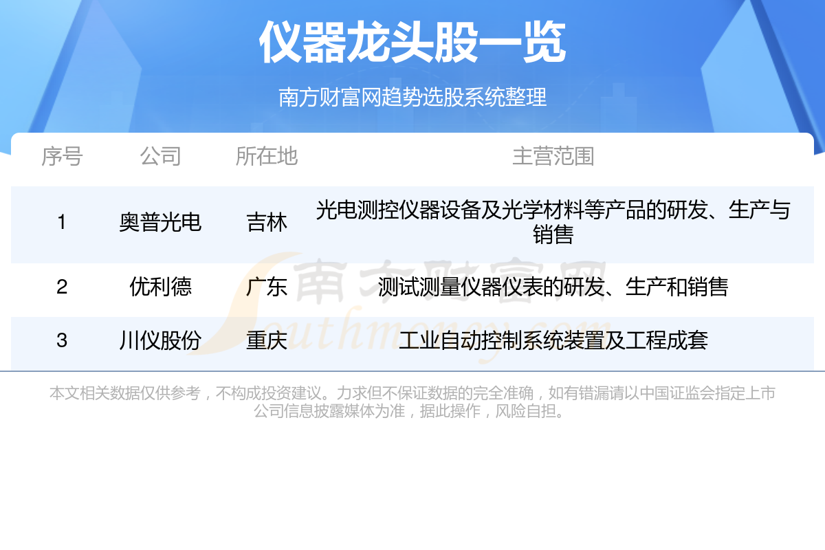 一、仪器龙头股一览
