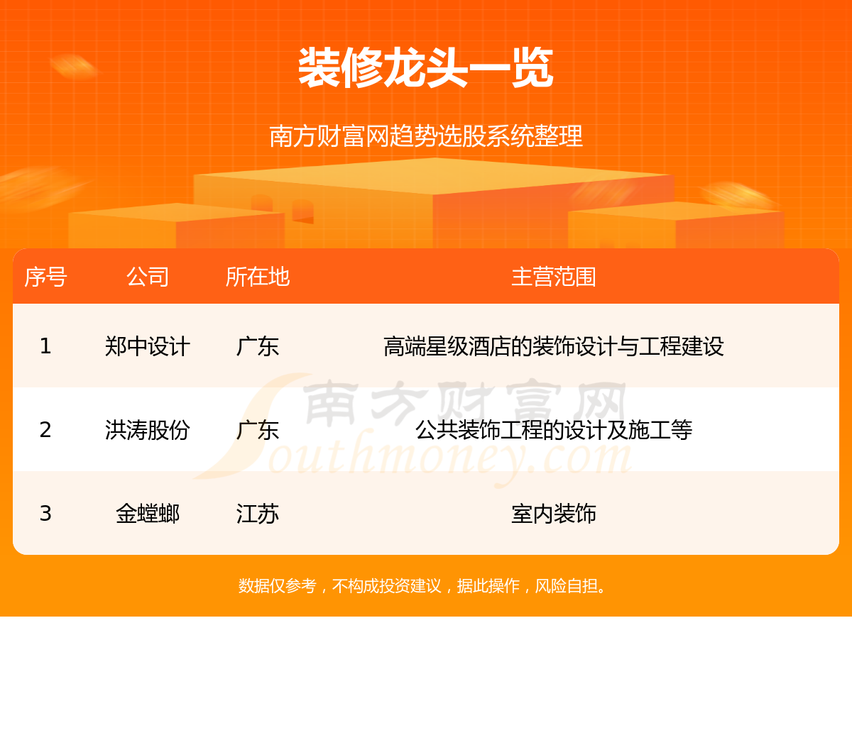 2、中天精装(002989):公司主要从事批量精装修业务、设计业务和其他业务。6月7日,中天精装(002989)5日内股价上涨7.25%,今年来涨幅上涨2.25%,涨0.25%,最新报16.410元/股。