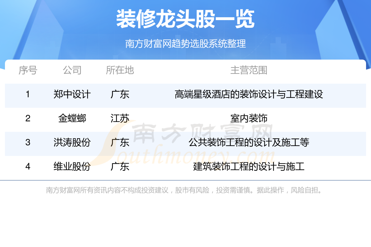 一、装修龙头股一览